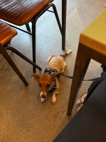 We have been able to bring Mango to so many places, including on the bus and tube. She can go into some restaurants.