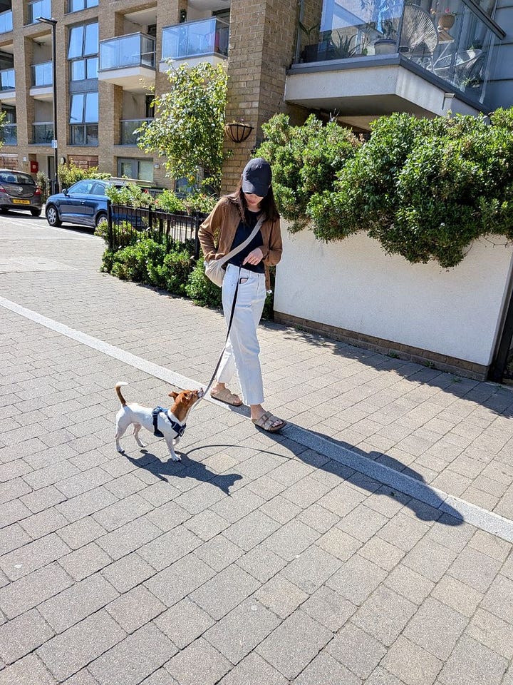 There are so many more dogs in London as well, which is a double-edged sword. We see more dogs than usual but she’s been relatively alright as long as we keep our distance. She has barked at one or two dogs who have come too near so far, but I think we’re doing well, all things considered! Good job, Mango.